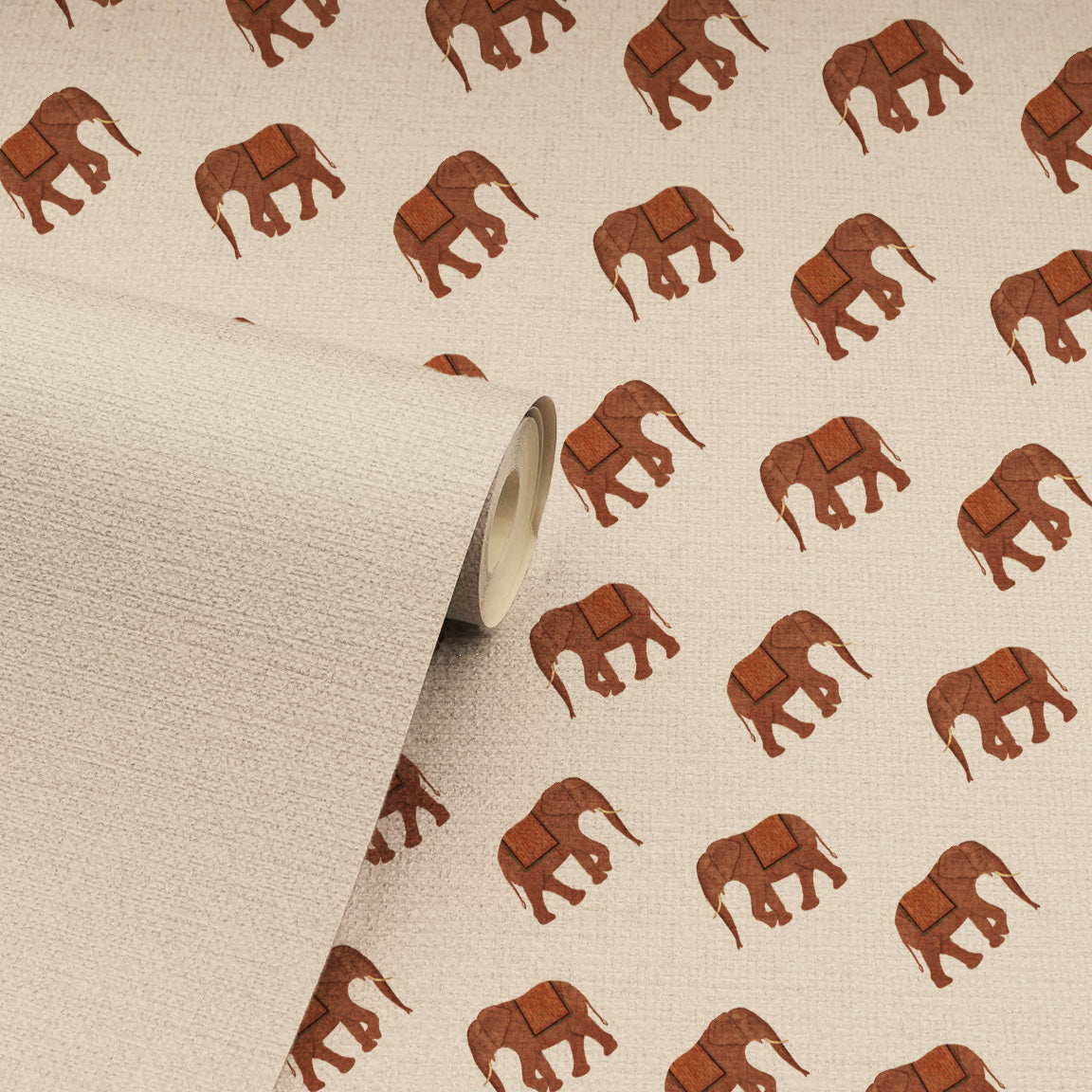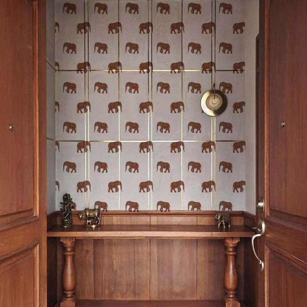 "Airawath" is a majestic wallpaper design featuring elegantly repeated elephant motifs inspired by the legendary, divine elephant of myth. With a rhythmic, symmetrical pattern and a subtle color palette, the design evokes a sense of regal calm—perfect for adding depth and cultural richness to both traditional and contemporary spaces.